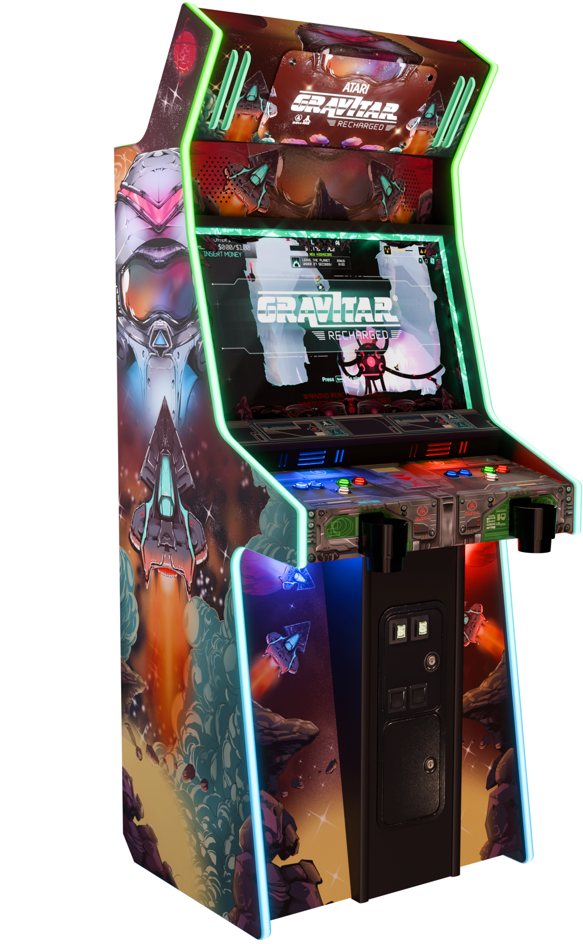 Gravitar: Recharged Arcade is a full-sized, commercial-grade arcade machine from Alan-1 that reintroduces one of Atari’s most demanding classics as a modern, competitive arcade experience. Designed specifically for today’s arcades, it preserves the original game’s gravity-based physics and skill-driven gameplay while expanding it into a connected esports ecosystem.